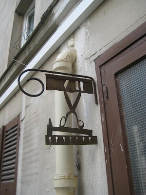 Walk through the Porte Cochère and you enter a pastoral picture-book scene of 19th century Paris (if you can overlook the parked cars!). Here wispy bushes of lilac and fig push up against the crumbling stone walls and glass verandas of small workshops. Outside, rusting signposts give clues to the trades of previous owners.