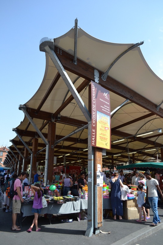 On the previous day I'd been in Boulogne to the west of Paris, a town that may as well have locked up its doors and pulled down the shutters for the summer. On a Sunday morning at the Marché de la Croix de Chavaux though, suddenly I found people, noise and odours...as well as plenty of colour! As it was the Eid festival at the end of ramadan, there was also an air of light-hearted festivity, with groups relaxing over coffee and sticky cakes, despite the swarms of wasps that these treats had attracted. With their brightly-coloured shutters, even the shops that were closed contributed to the party.